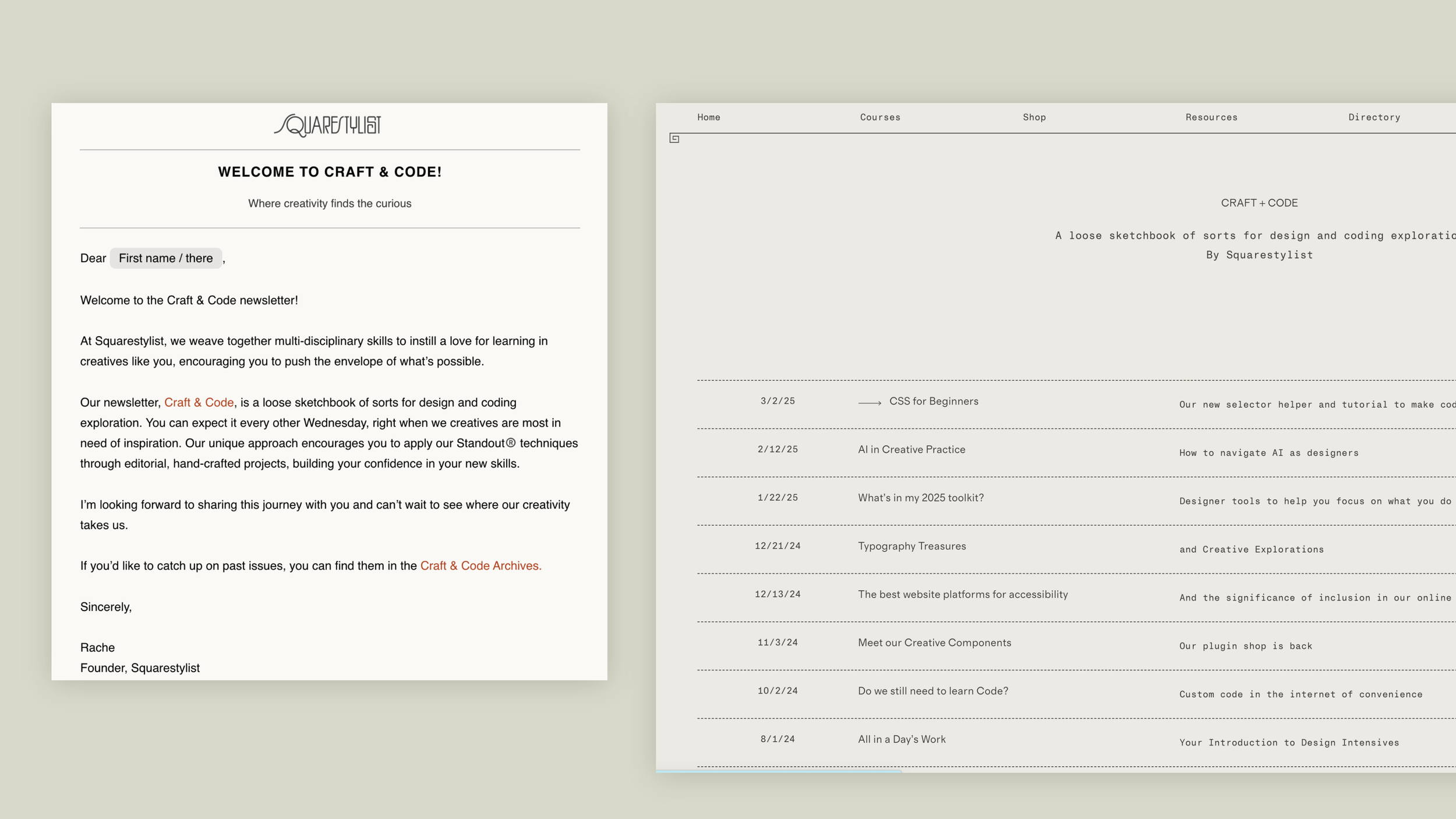An invitation to learn design and code with Standout Squarespace & Standout Shopify