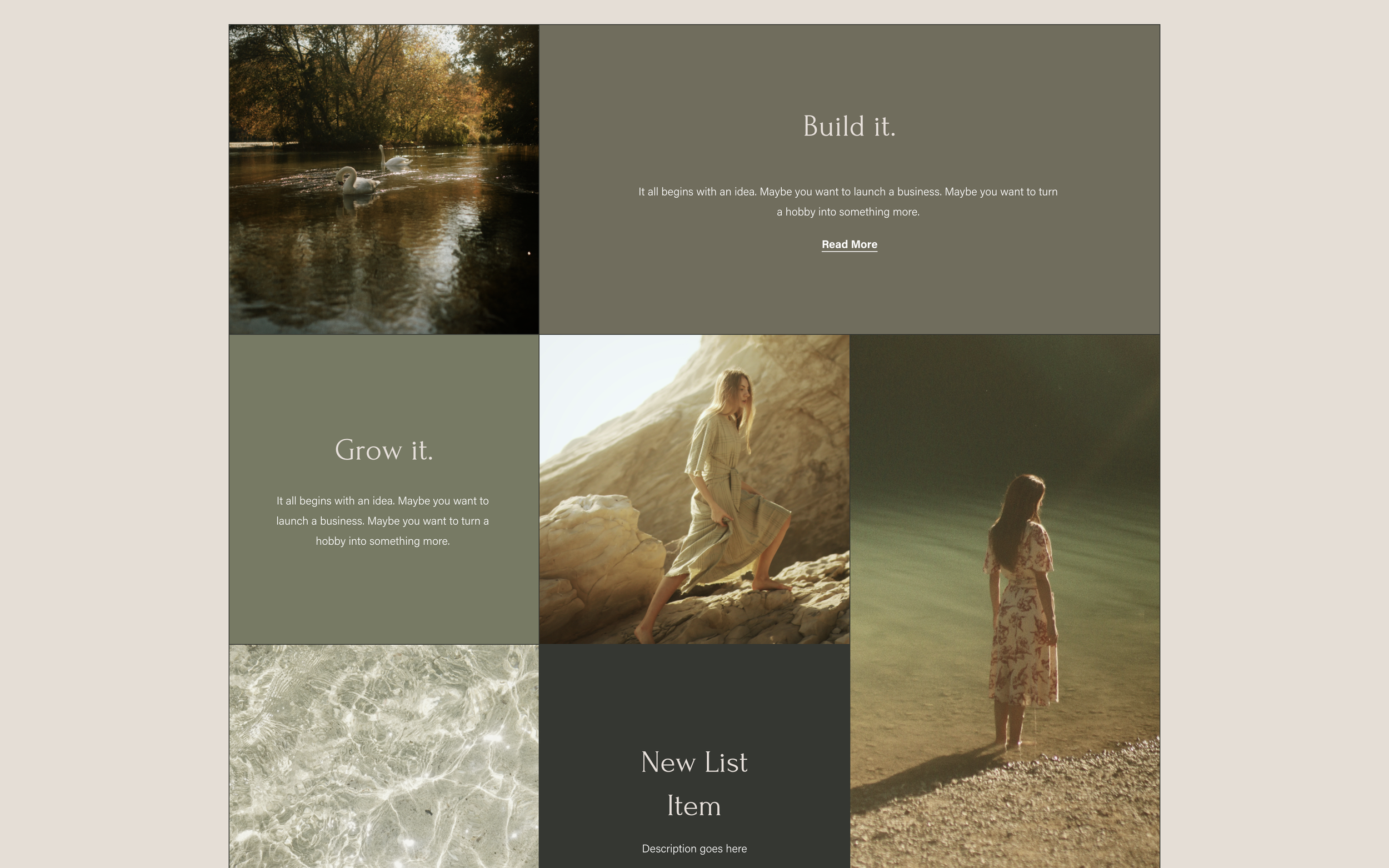 A CSS Grid layout for Simple List sections with items spanning multiple columns and rows for dynamic, magazine-style arrangements.