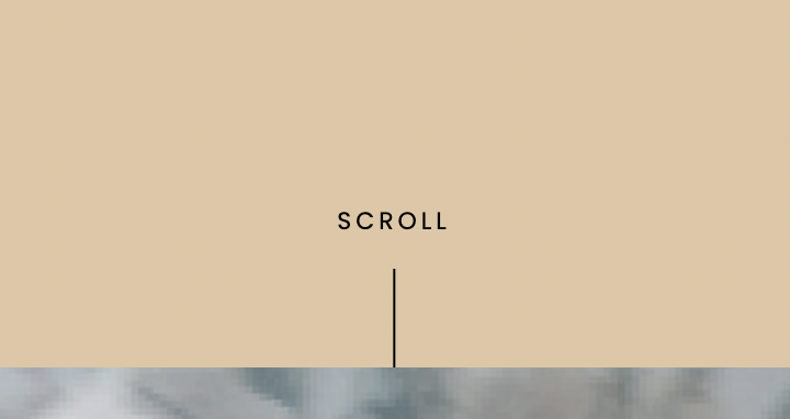 A scroll indicator in Squarespace that displays "SCROLL" text with an animated line that disappears as users begin scrolling, then reappears when back at the top of the page.