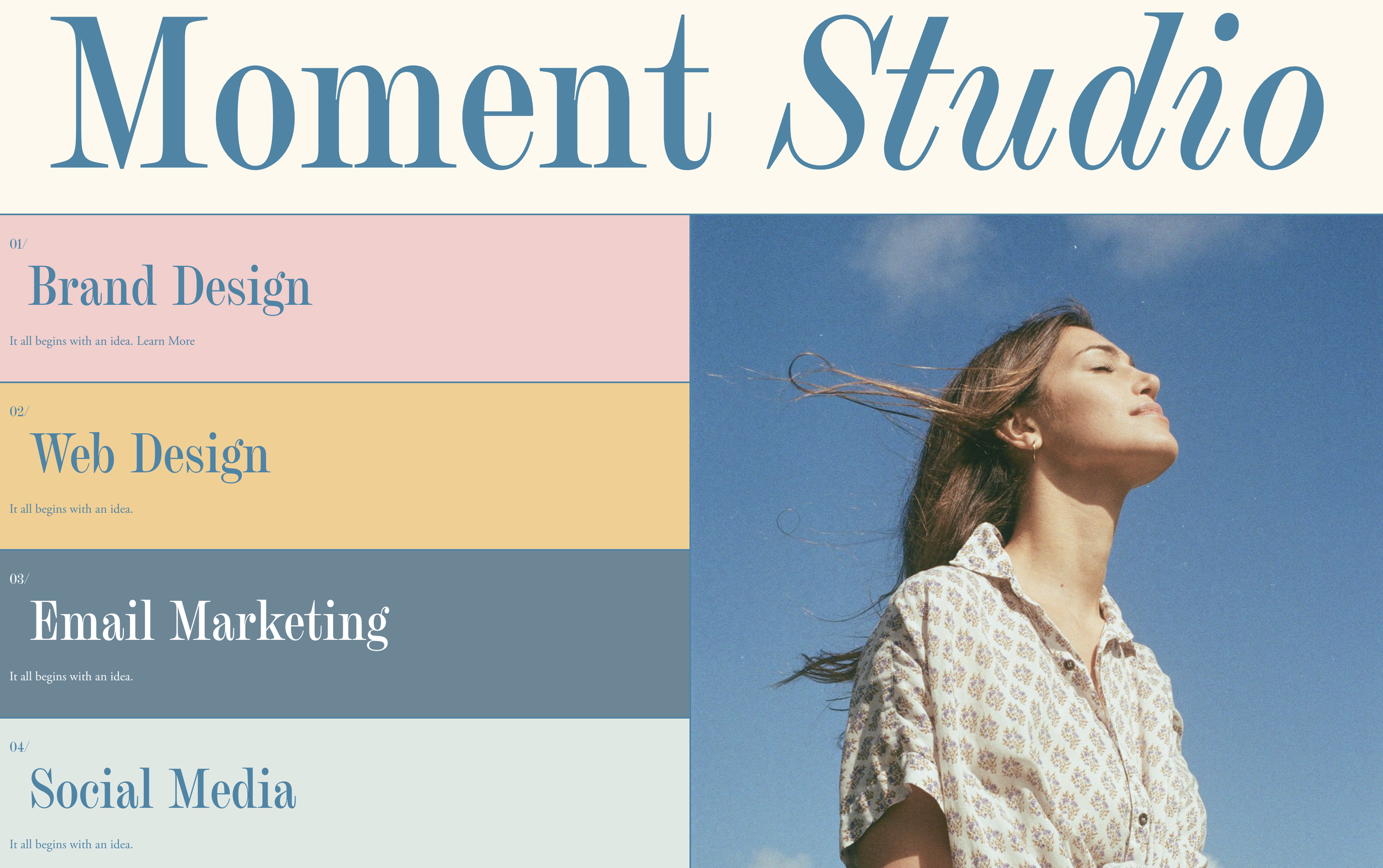 Service category navigation, multi-service landing pages, course module selectors, product line showcases, portfolio category displays.