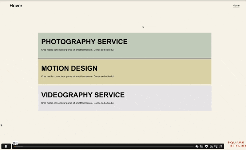 Videos are attention magnets—they can overwhelm a layout before users even read your message. This technique inverts the hierarchy: text leads, video follows. It's perfect for portfolios where you want visitors to engage with project names or descriptions before seeing the work, building anticipation rather than giving everything away immediately.